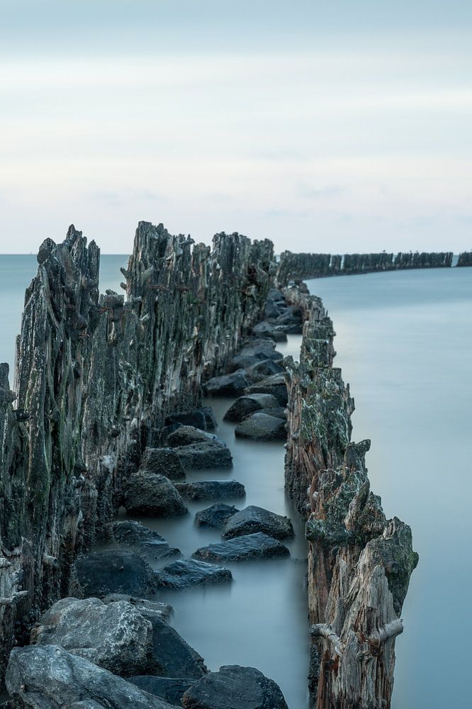 Ein schönes, ruhiges Bild der alten Wassersperre bei Wierum (Friesland).