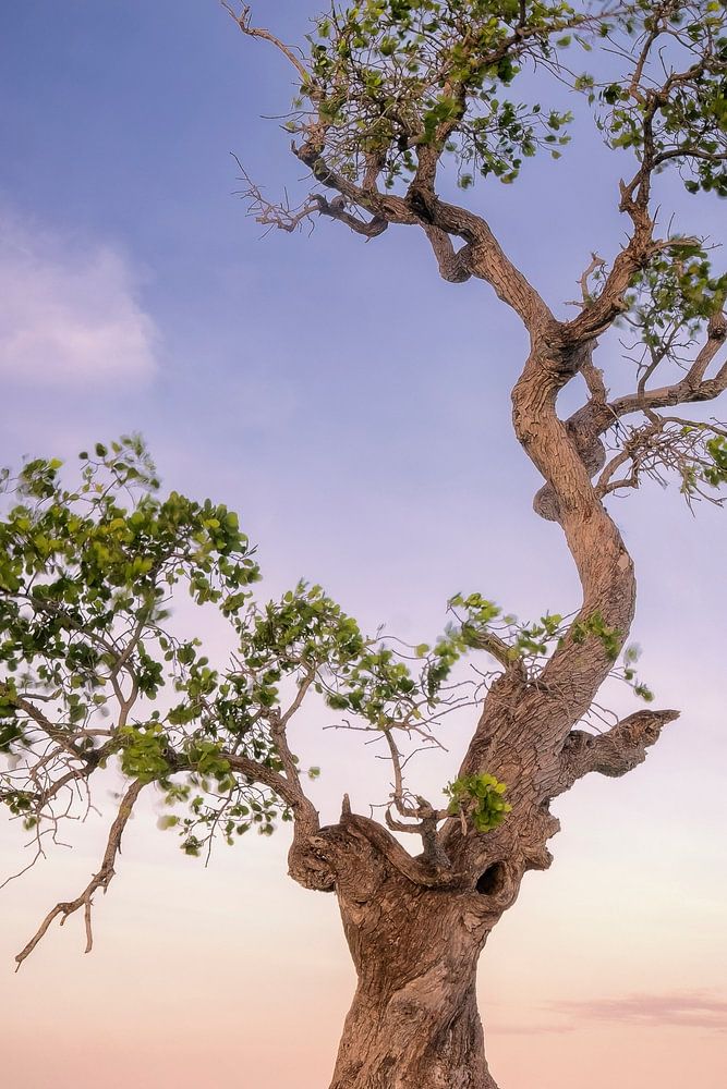 Ein wunderschönes altes Exemplar eines Mangrovenbaums, das in den Gewässern um die Insel Siquijor auf den Philippinen tapfer weiterwächst. Die raue Rinde und die gezackten Äste heben sich von dem farbigen Himmel ab, an dem die Sonne gerade untergegangen ist. Was für ein großartiges Beispiel dafür, dass das Älterwerden so viel Schönheit in sich bergen kann.