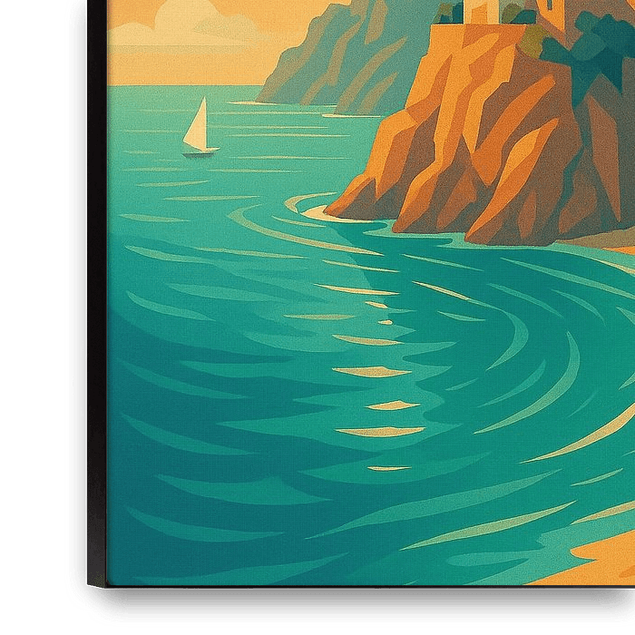 Bestelle dieses Art Deco-Wandbild Amalfi Art Deco Reiseposter - Küste Italienische Riviera von Travel Shop als Reproduktion auf Leinwand, Alu-Dibond, als Poster, Fototapete oder Acrylglasbild.