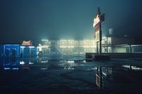 Bestelle dieses Landschafts-Wandbild American Motel bei Nacht von Arjen Roos als Reproduktion auf Leinwand, Alu-Dibond, als Poster, Fototapete oder Acrylglasbild.
