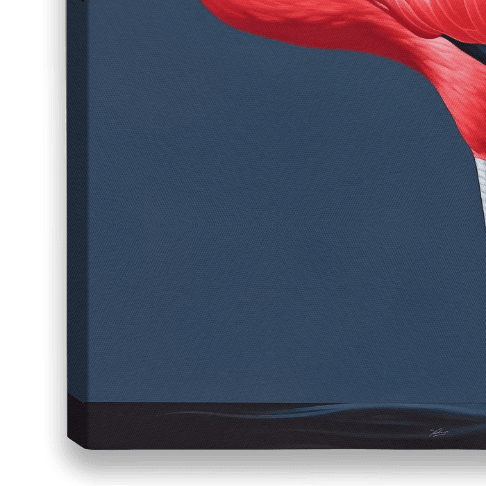 Tauchen Sie ein in die bezaubernde Welt dieses anmutigen roten Flamingos, der vor einem tiefdunklen blauen Hintergrund schimmert - ein visuelles Spektakel voller Farbkontraste. Dieses Meisterwerk ist nicht nur ein Fest der natürlichen Eleganz, sondern auch eine beeindruckende Zusammenarbeit zwischen menschlicher künstlerischer Vision…