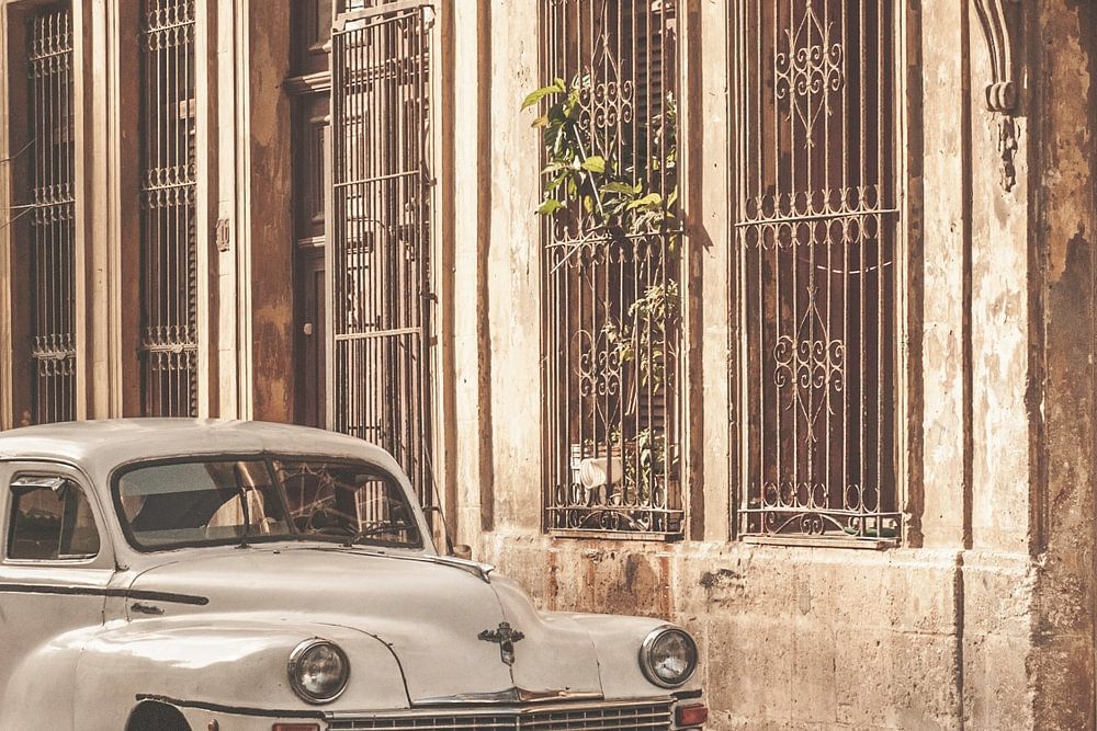 Ein weißer Oldtimer in den Straßen von Havanna. Ohne ablenkende Elemente. Die Kunst an sich.