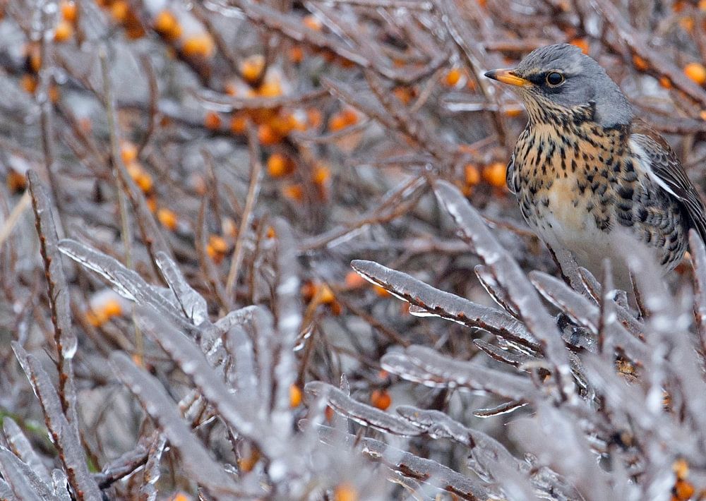 Atmosphäre Winter Schnee Eis Niederlande Vogel orange Farbe