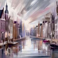 Bestelle dieses abstrakte Wandbild Amsterdam Stadtbild moderne Malerei. von AVC Art Studio als Reproduktion auf Leinwand, Alu-Dibond, als Poster, Fototapete oder Acrylglasbild.