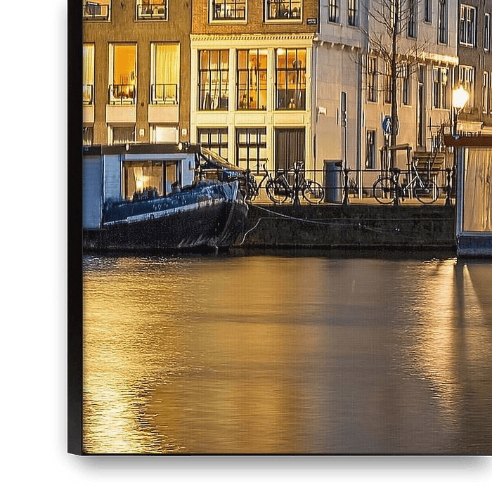 Amsterdam bei Nacht auf der Amstel in den Niederlanden bei Sonnenuntergang
