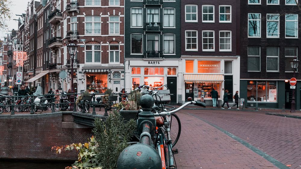 Die Grachten von Amsterdam an einem trüben Herbsttag.