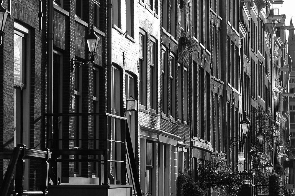 Die Bloemgracht im Amsterdamer Stadtteil Jordaan in schwarz-weiß.