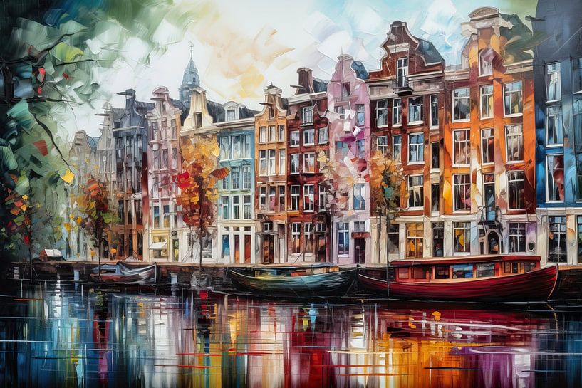 Bestelle dieses moderne Wandbild Amsterdam schilderij grachtenpanden von ARTEO Gemälde als Reproduktion auf Leinwand, Alu-Dibond, als Poster, Fototapete oder Acrylglasbild.