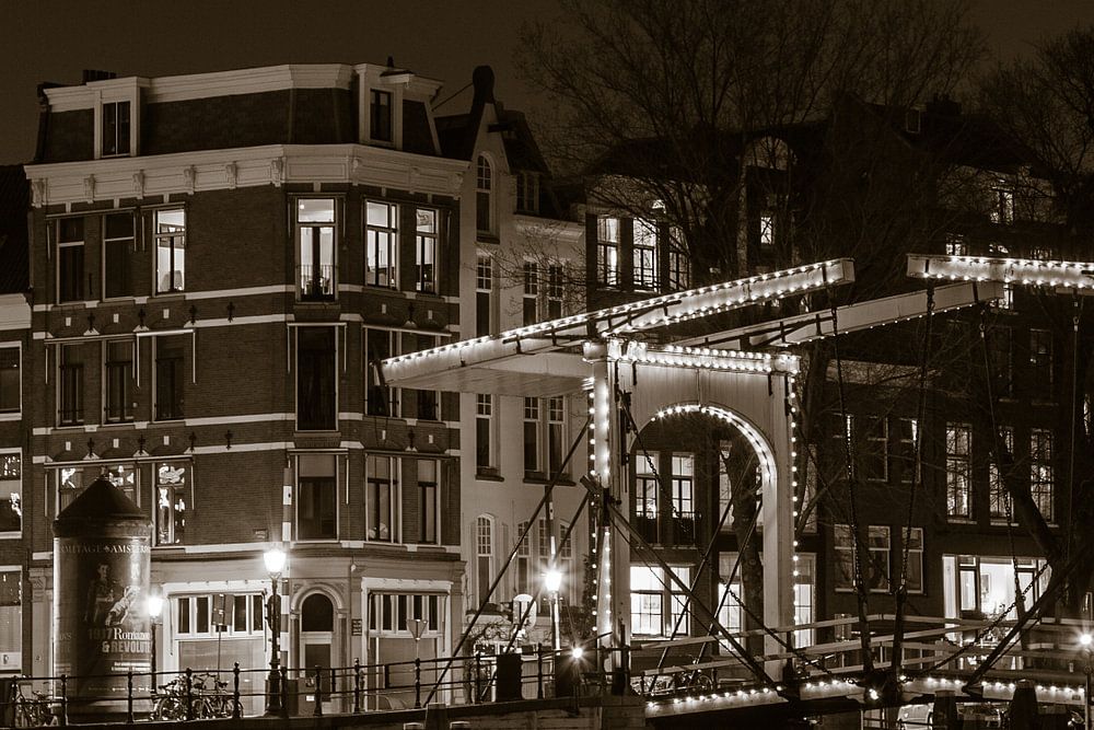 Amsterdam mit seinen schönen Grachten ist immer wieder schön anzuschauen. Das Foto wurde in Sepiafarben umgewandelt.