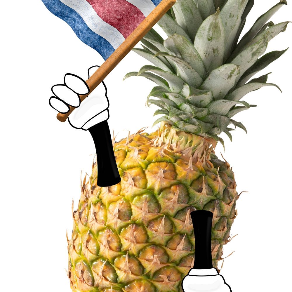 Glückliche Ananas, die eine costaricanische Flagge schwenkt. Costa Rica ist der größte Exporteur von Ananas in der Welt.