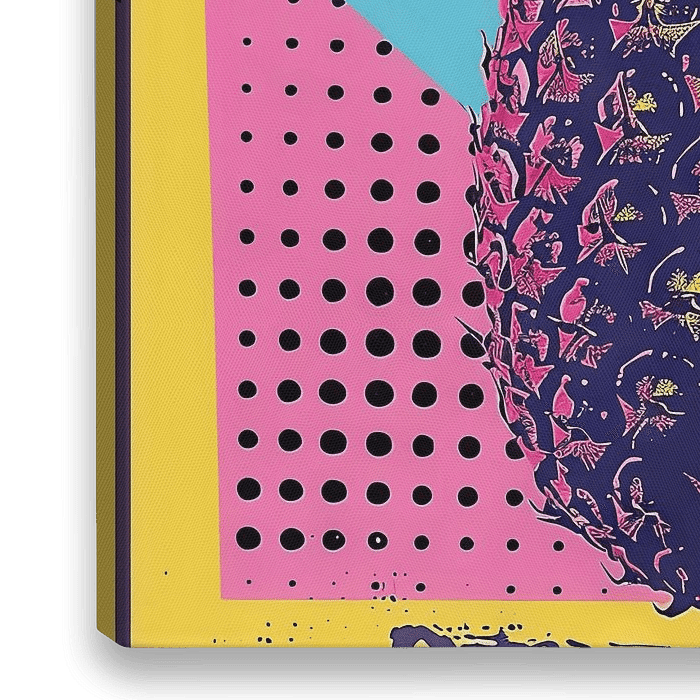 Erleben Sie die farbenfrohe Welt der Pop Art mit diesem beeindruckenden Ananas-Motiv. In kräftigen Neonfarben von Blau und Gelb strahlt dieses Kunstwerk Energie und Lebendigkeit aus. Die kontrastierenden Farbtöne heben die Details der Ananas hervor, während der Hintergrund in rosa Punkten eine Retro-Atmosphäre vermittelt. Ideal für…