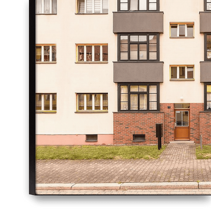 Bestelle dieses moderne Wandbild Anger-Siedlung von Michael Schulz-Dostal als Reproduktion auf Leinwand, Alu-Dibond, als Poster, Fototapete oder Acrylglasbild.