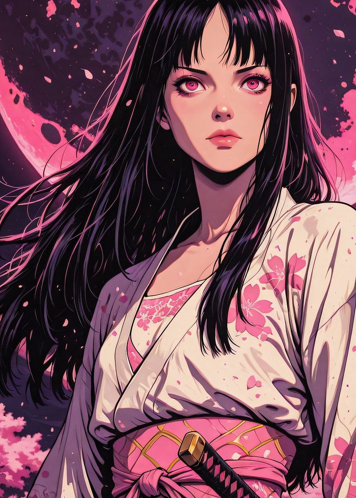 Der unerschütterliche Anführer der Sakura-Mond-Krieger, der unter einem in karmesinrote Blüten getauchten Himmel Wache hält. Im Schein des karmesinroten Mondes verkörpert Crimson Sakura Vanguard unerschütterliche Entschlossenheit und unerschütterliche Stärke. In einen blütengeschmückten Kimono gehüllt, das Katana an der Seite, steht sie als Vorhut da - diejenige, die führt, wenn die Schatten fallen. Der Kirschblütenhain hinter ihr blüht unaufhörlich und symbolisiert sowohl flüchtige Schönheit als auch ewige Ehre. Dieses Kunstwerk fängt den Geist von Wachsamkeit, Eleganz und Führung unter dem wachsamen Mond ein.