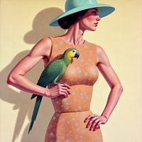 Bestelle dieses Porträt Anmutige Frau mit lebhaftem Papagei von Jan Keteleer als Kunstdruck auf Leinwand, Alu-Dibond, als Poster, Fototapete oder Acrylglasbild.
