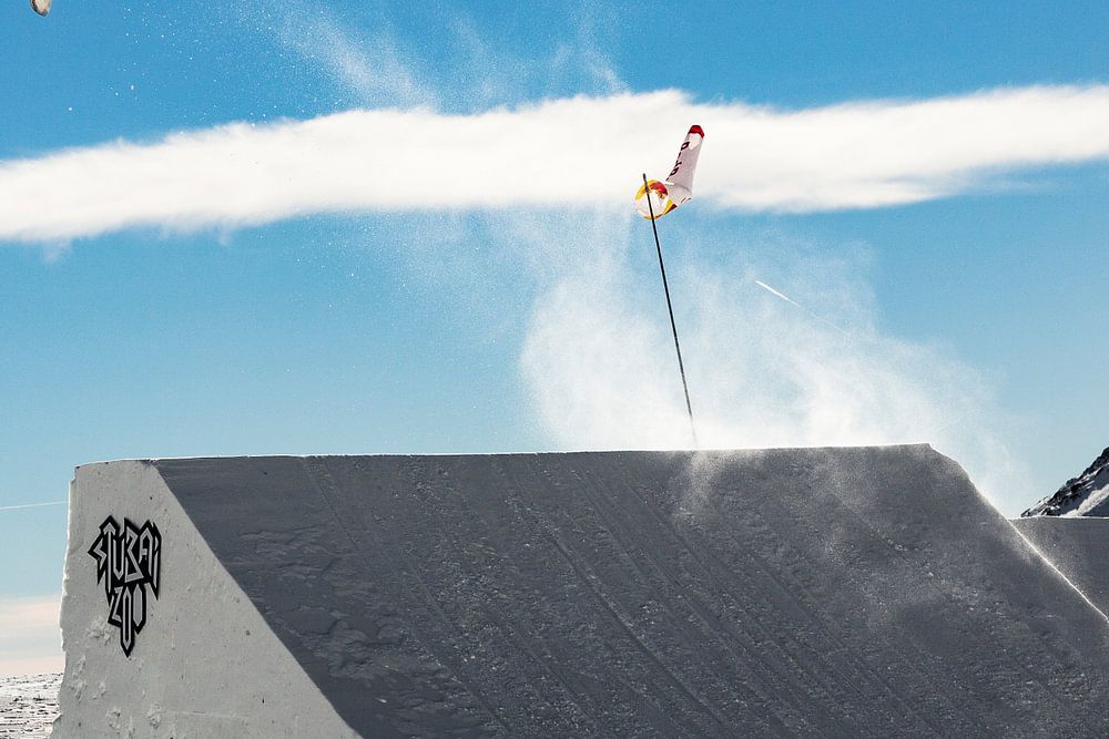 Anna Gasser ist die Olympiasiegerin der letzten Winterspiele in Südkorea. Auf diesem Foto sieht man sie hoch über ihrem eigenen Land, Österreich, fliegen. Dies wurde für ihre Sponsoren aufgenommen. Einschließlich Red Bull.