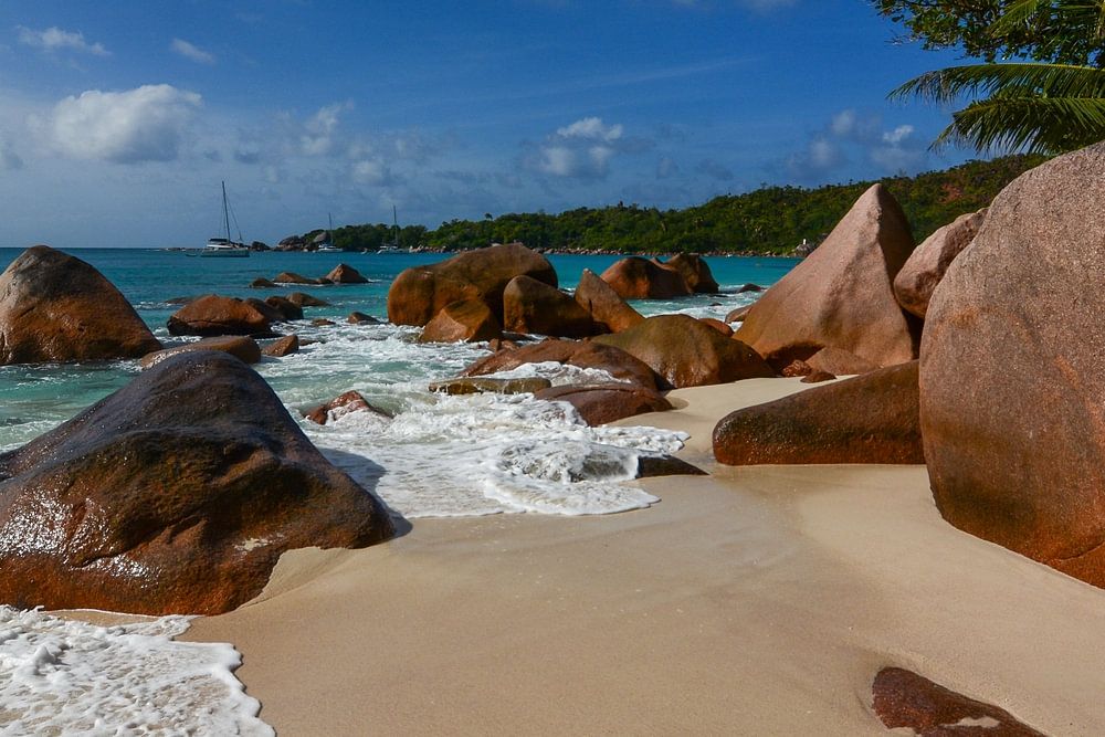 Ein Traumstrand auf der Insel Praslin auf den Seychellen