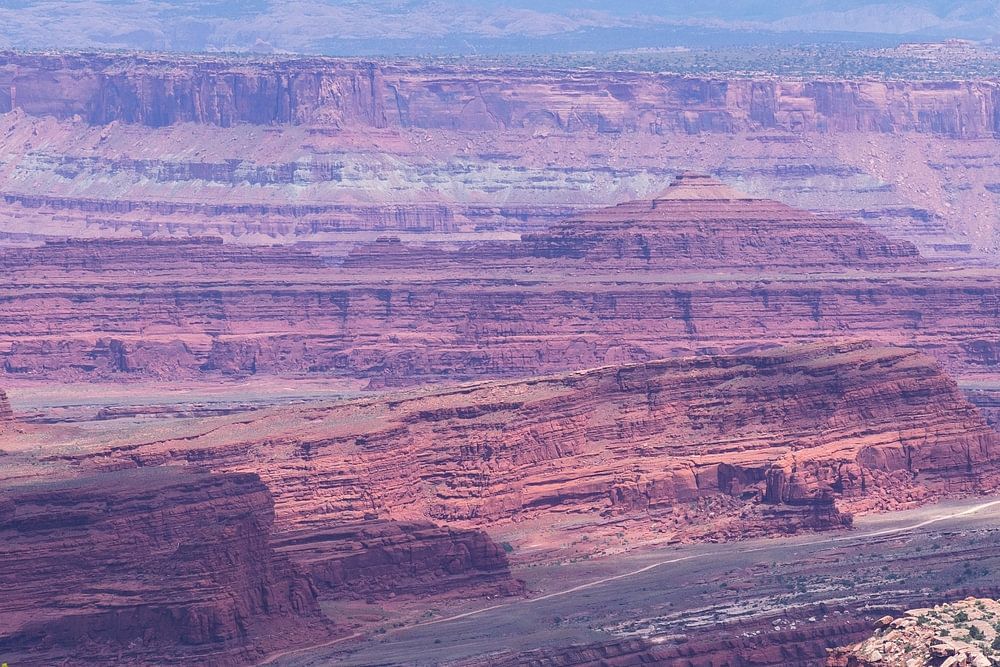 Dies ist ein Foto von einer schönen Aussicht auf den Canyonlands National Park in Amerika, mit den schneebedeckten Berggipfeln im Hintergrund. Ein tolles Bild von einem schönen Stück Natur.