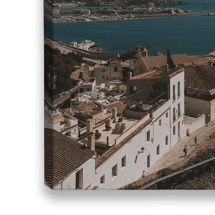 Bestelle das Foto Ansichten von Ibiza-Stadt, Altstadt mit Blick auf den Hafen von Manon Visser als Reproduktion auf Leinwand, Alu-Dibond, als Poster, Fototapete oder Acrylglasbild.