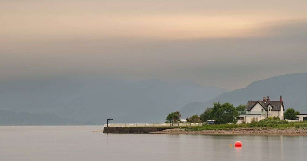 Unser erster Aufenthalt in Schottland war in einem Hotel in der Stadt Onich auf der Isle of Skye. Leider hatten wir kein Glück mit dem Wetter, es regnete viel und war recht kühl. Ein Vorteil ist, dass es manchmal aufklart und damit manchmal die schönsten Farben zum Vorschein kommen. So wie auf diesem Foto, fast völlig windstill, mit schönen weichen Pastelltönen und der nötigen Dramatik am Himmel. Aufgenommen mit einer langen Verschlusszeit, um der Stimmung des Moments gerecht zu werden.