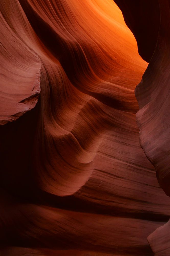 In Page Arizona USA finden Sie diese orangefarbenen Slot Canyons. Sie sind Teil der Lower Antelope Canyons. Wegen der Sonne, die in die Schlucht scheint, färben sich die Wände wunderschön orange und rot. Ein Spektakel zum Durchwandern und Fotografieren.