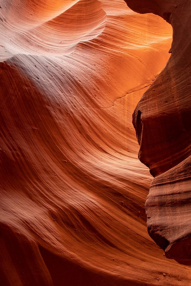 In der Nähe von Page, Arizona, befinden sich wunderschöne Canyons, die nur in Begleitung eines Navajo-Führers besucht werden können. Die Canyons sind durch Erosion des Sandsteins entstanden. Von 11.00 bis 14.00 Uhr gelangt das Sonnenlicht durch einen schmalen Schlitz auf den sandigen Boden des Canyons. Dies bietet ein schönes Schauspiel.
