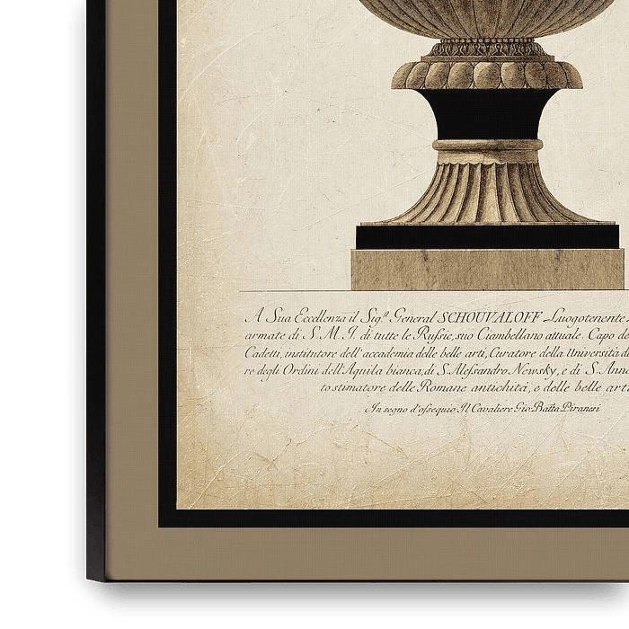 Ein kolorierter Schwarz-Weiß-Stich des italienischen Künstlers 'Giovanni Battista Piranesi'.