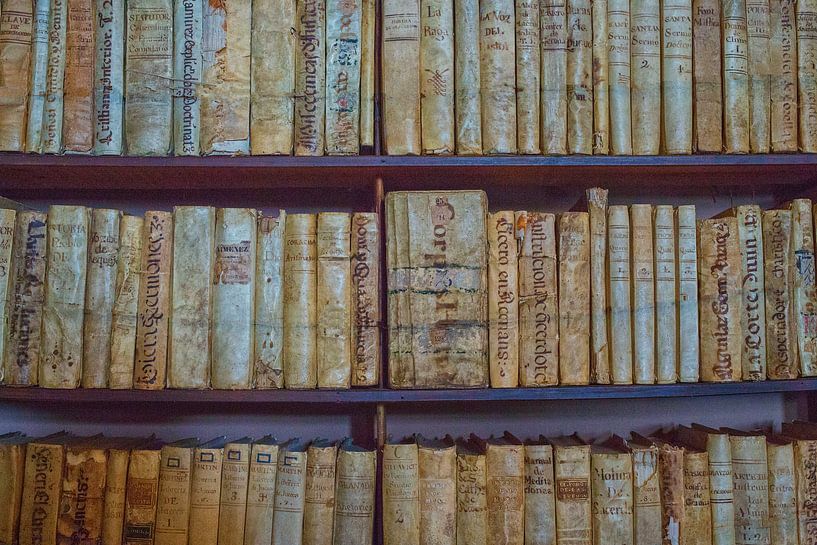 Reihen antiker Bücher in der Bibliothek eines alten Landhauses in England