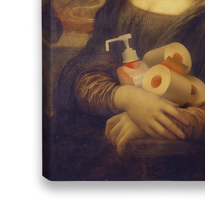 Auch Mona Lisa muss sich vor Covid-19 schützen. Der Coronavirus und andere Formen eines Bakteriums oder Virus stellen eine Gefahr für die Malerei dar. Hier hat das Mädchen eine Mundkappe auf, eine oder drei Toilettenpapierrollen und Seife im Arm. Auf diese Weise ist die Frau gut geschützt, da sie bereits volljährig ist.