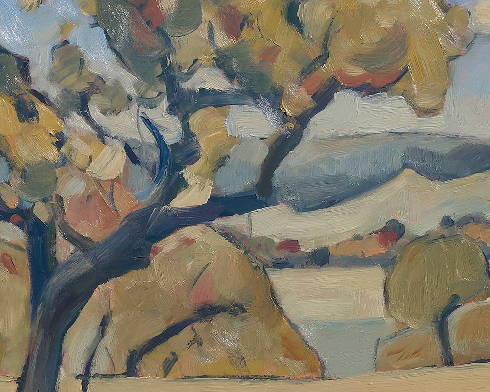 Apfelbaum im Obstgarten Bellet Hoogam in Cottessen in Heuvelland (Südlimburg, NL). Öl auf Holz, 50 x 40 cm. 2020.