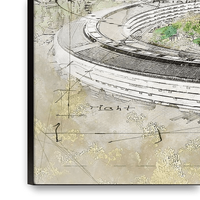 Bestelle diese Illustration Apple Park, Cupertino von Theodor Decker als Reproduktion auf Leinwand, Alu-Dibond, als Poster, Fototapete oder Acrylglasbild.