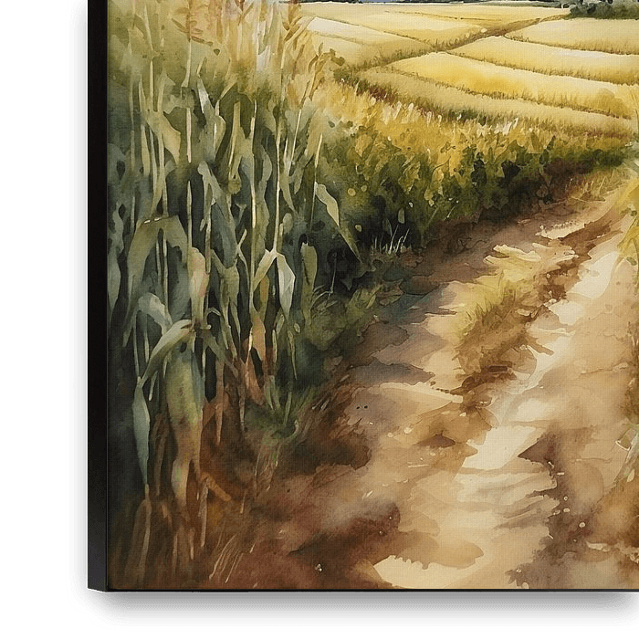 Bestelle dieses Landschafts-Wandbild Aquarell Maisfeld von NJ Midnight Studio als Reproduktion auf Leinwand, Alu-Dibond, als Poster, Fototapete oder Acrylglasbild.
