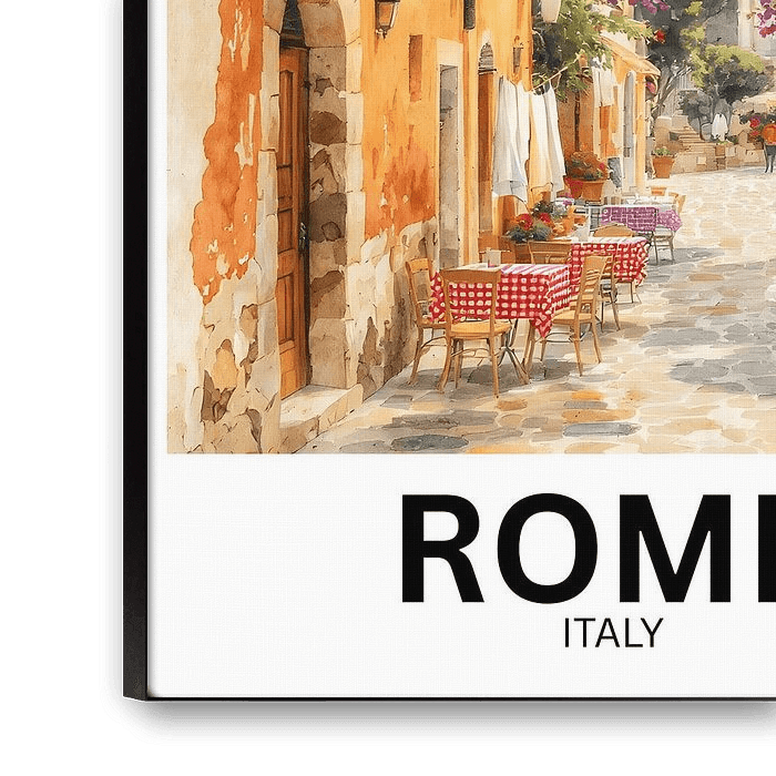 Dieses lebendige Aquarell fängt das Herz Roms ein, wo rustikale goldene Wände, blühende Bougainvillea und gemütliche Straßencafés einen unwiderstehlichen mediterranen Charme verbreiten. In der Ferne erhebt sich stolz das majestätische Kolosseum als Symbol der zeitlosen Geschichte Italiens. Die in warmes Sonnenlicht getauchten Kopfsteinpflasterstraßen laden den Betrachter ein, durch die Stadt zu schlendern und die Essenz des "Dolce Vita" zu genießen. Dieses Bild ist perfekt für Liebhaber von Reisen, Architektur und italienischer Kultur und verleiht jedem Raum einen Hauch von Romantik und Wärme.