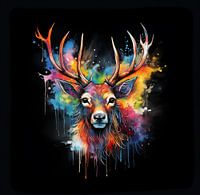 Bestelle dieses abstrakte Wandbild Aquarell des Kopfes eines Rothirsches von Margriet Hulsker als Reproduktion auf Leinwand, Alu-Dibond, als Poster, Fototapete oder Acrylglasbild.