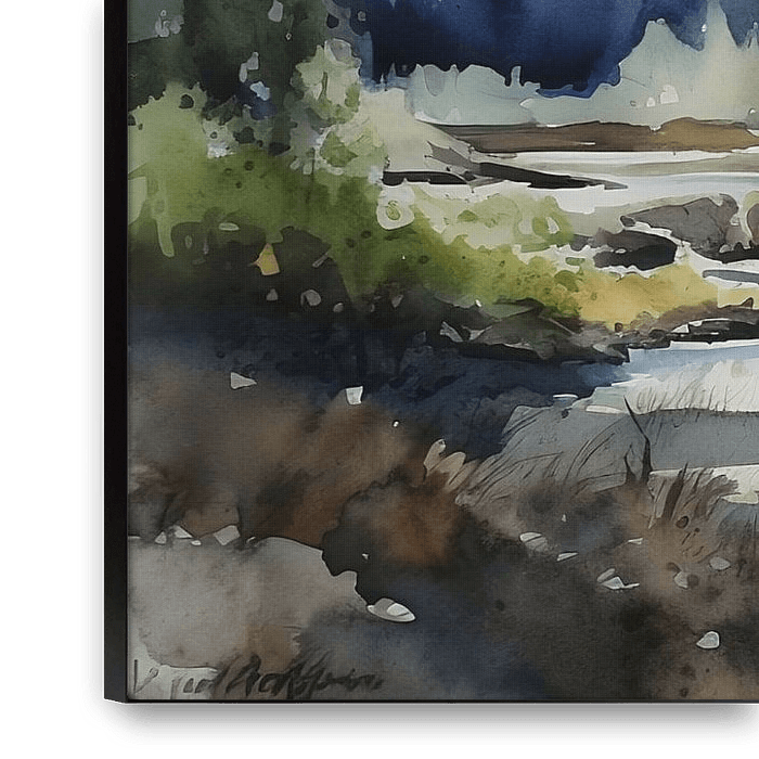 Bestelle dieses Landschafts-Wandbild Aquarelle Landschaft Alaska von NJ Midnight Studio als Reproduktion auf Leinwand, Alu-Dibond, als Poster, Fototapete oder Acrylglasbild.