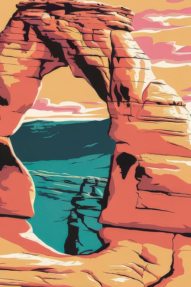 Ein majestätischer Bogen thront unter einem Himmel in sanften Pastellfarben, während die erdigen Töne des Felsens den Charakter der Natur widerspiegeln. Diese beeindruckende Darstellung weckt Sehnsucht nach Abenteuer und Freiheit, perfekt geeignet für das Wohnzimmer, um Besucher zu inspirieren und eine warme, einladende Atmosphäre zu schaffen.