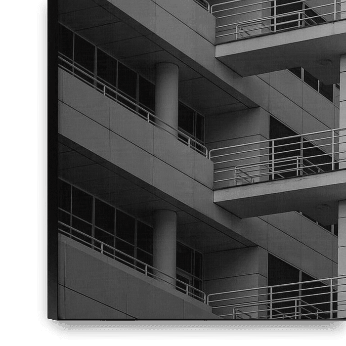 Bestelle dieses abstrakte Wandbild Architectural Silence - Rathaus Den Haag in schwarz-weiß von Robert Jan Smit als Reproduktion auf Leinwand, Alu-Dibond, als Poster, Fototapete oder Acrylglasbild.