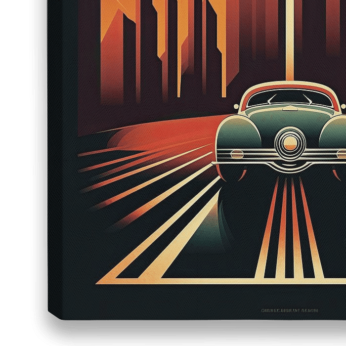 Bestelle dieses Art Deco-Wandbild Art Deco Auto Poster von Niklas Maximilian als Reproduktion auf Leinwand, Alu-Dibond, als Poster, Fototapete oder Acrylglasbild.