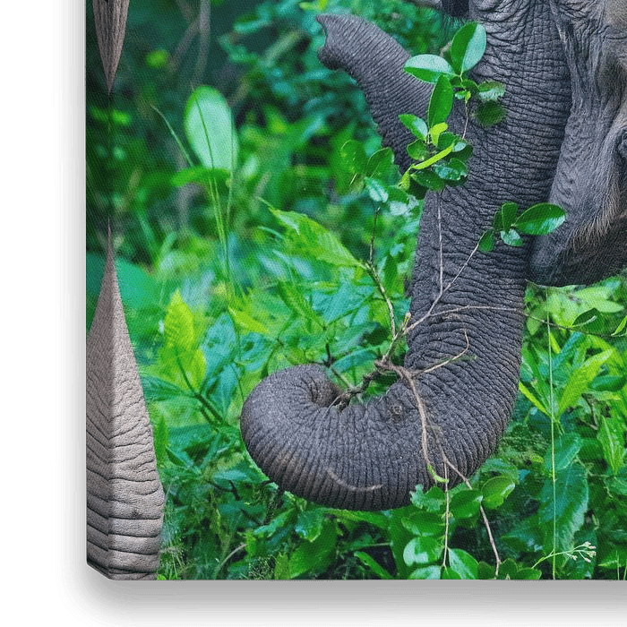 Bestelle das Foto Asiatischer Elefant mit Kalb in Sri Lanka von Julie Brunsting als Reproduktion auf Leinwand, Alu-Dibond, als Poster, Fototapete oder Acrylglasbild.