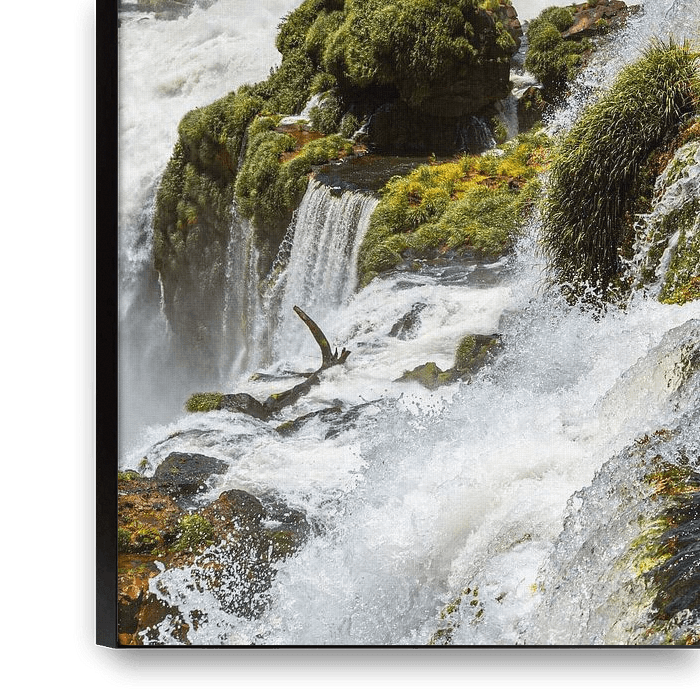 Atemberaubendes Foto der Iguazú-Wasserfälle, die sich an der Grenze zwischen Brasilien und Argentinien bei Foz do Iguaçu befinden. Dieses beeindruckende Wasserfallbild fängt das kraftvoll fließende Wasser, die üppige grüne Vegetation und die dramatische Schönheit der Natur ein. Perfekt für Liebhaber der Naturfotografie und…