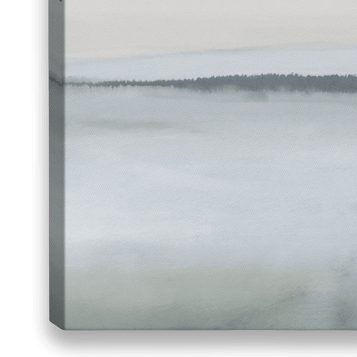 Abstrakt minimalistisches Landschaftsbild mit sanften Farbtönen in blau und grün. Aquarell auf Papier.