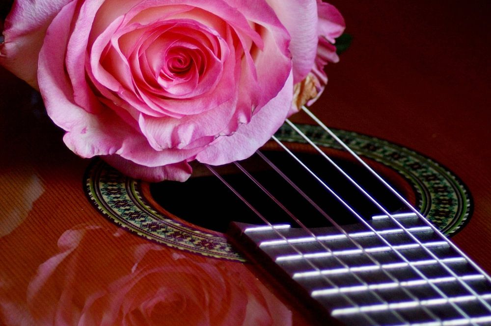 Ich dachte, es wäre schön, diese beiden Dinge zu kombinieren. Meine schöne Gitarre mit der schönen Rose hervorzuheben.