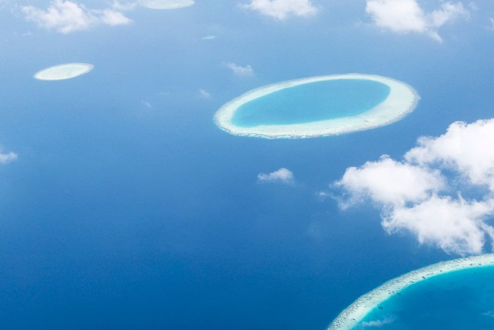 Atolle der Malediven vom Flugzeug aus fotografiert