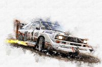 Gemälde aus einer Serie legendärer Rallyeautos. Mit Leidenschaft für Oldtimer-Fans gemalt. Ein dynamisches Automobilkunstwerk.
