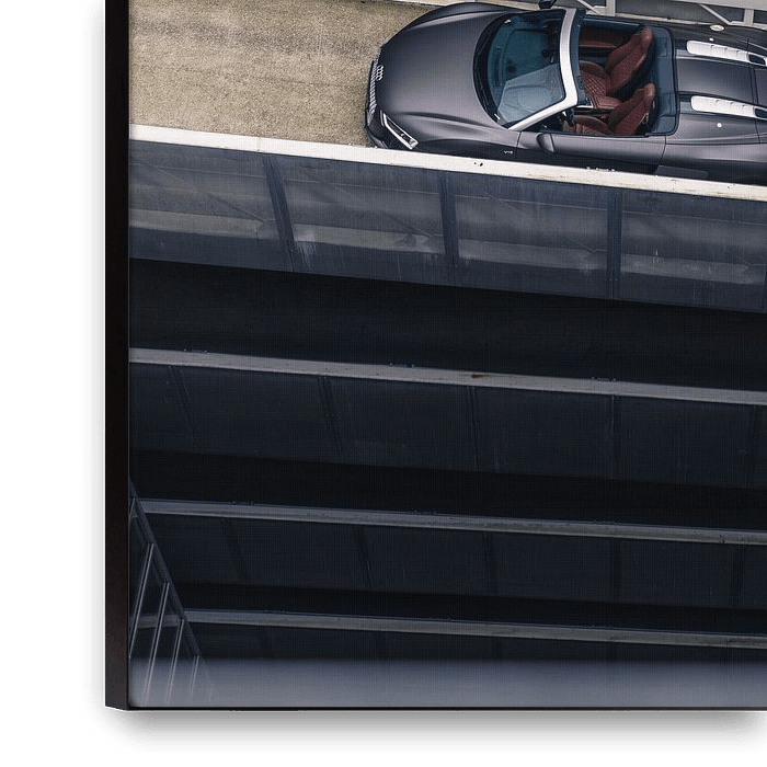 Bestelle dieses moderne Wandbild Audi R8 V10 in einer Stilvollen Parkgarage mit Sanfter Beleuchtung von Sebastiaan van 't Hoog als Reproduktion auf Leinwand, Alu-Dibond, als Poster, Fototapete oder Acrylglasbild.