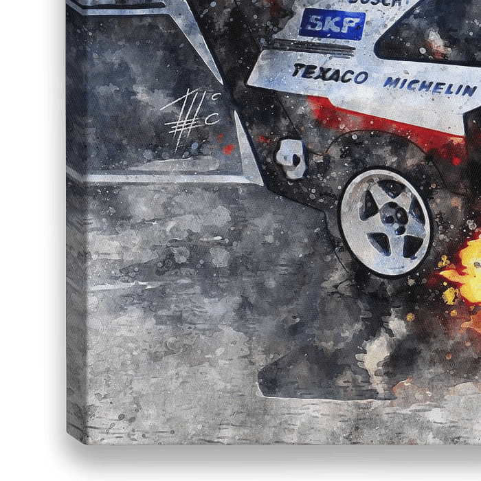 Illustration aus einer Serie von legendären Rallyewagen. Gestaltet, aus Liebe zum klassischen Rallyesport. Gemalt mit Aquarellfarben auf Papier.