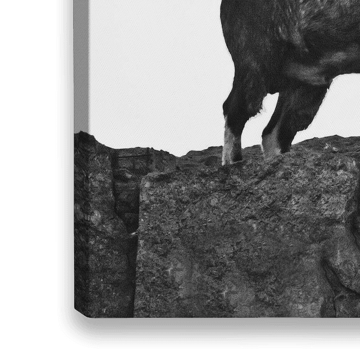 Bestelle das Foto Auf dem Berg steht die Ziege Markhor, ein Tier mit riesigen verzweigten Hörnern. von Michael Semenov als Reproduktion auf Leinwand, Alu-Dibond, als Poster, Fototapete oder Acrylglasbild.