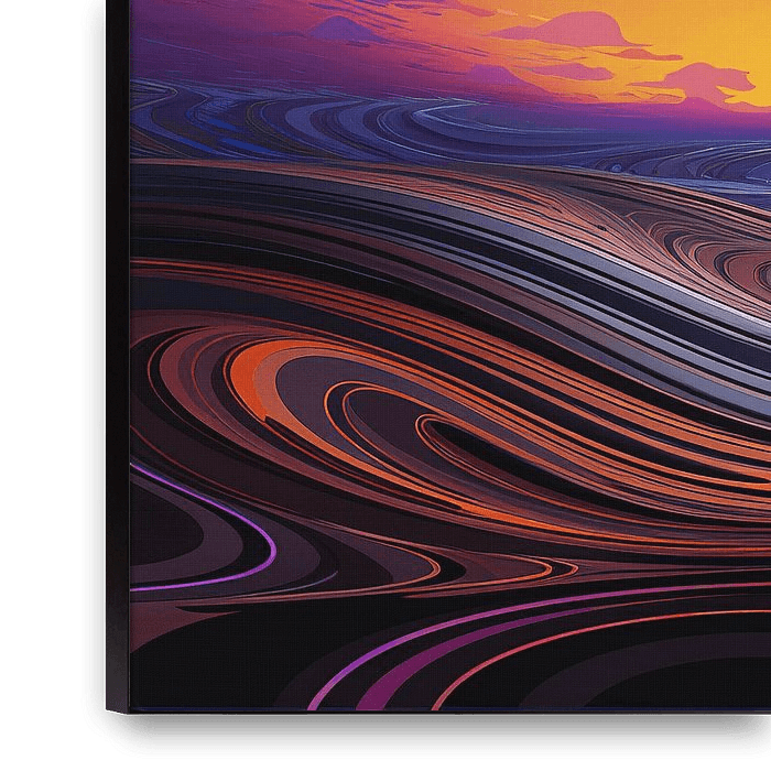 Ihre gewählte Kunst auf Leinwand, gespannt in einem Aluminiumrahmen. Schnell und einfach austauschbar für eine frische Ausstrahlung und ganz nach Ihren Wünschen.
