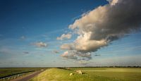 Ruhe und Raum auf dem Waddendijk in Nordgroningen. Auf der linken Seite das Seetang und das Waddenmeer und rechts den Polderfeldern.