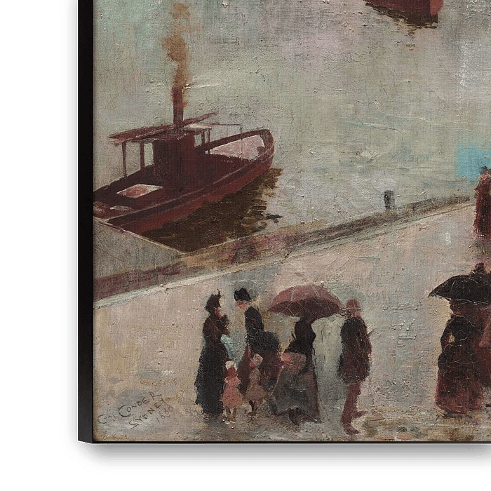 Aufbruch des Orients - Circular Quay, Charles Conder (1888) Charles Edward Conder war ein in England geborener Maler, Lithograf und Designer. Er wanderte nach Australien aus und war eine Schlüsselfigur der Heidelberger Schule, die wohl den Beginn einer unverwechselbaren australischen Tradition in der westlichen Kunst darstellt.