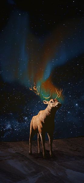Bestelle das digitale Kunst Bild Aurora Reh B von Beautiful Company Studio Design (bcstudio) als Reproduktion auf Leinwand, Alu-Dibond, als Poster, Fototapete oder Acrylglasbild.